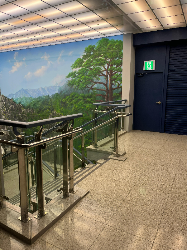 1층을 둘러본 후, 지하로 내려가볼게요! ⬇️내려가는 길엔 작지만 예쁜 인공 폭포도 있어요 💦