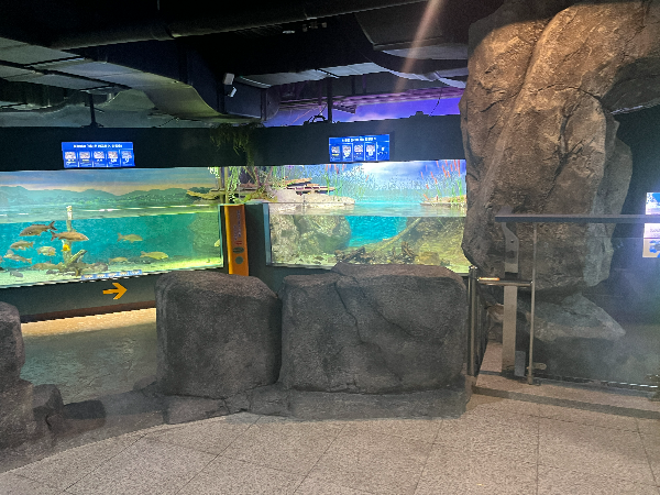 입구를 따라 들어가면 물고기를 바로 만날 수 있어요! 🚶♀️