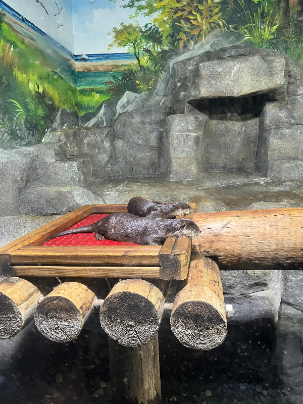 수달 두 마리가 있었는데, 둘 다 수컷 같더라고요 .물속에서 수영하는 모습은 보지 못해 아쉬웠어요ㅠ 😔💧