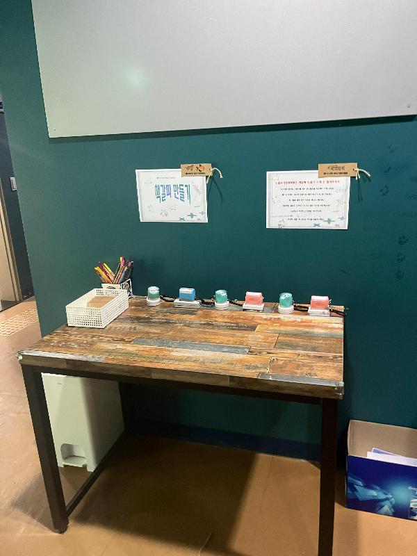 또 다른 체험, 책갈피 만들기! 📚✂️종이와 색연필이 준비되어 있어서, 원하는 만큼 만들고 가져갈 수 있어요 🖍️